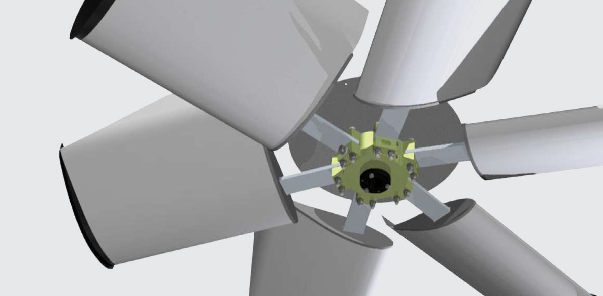 The flexible connection between airfoil and hub reduces the vibrations induced to the driving system and supporting structure, avoids resonance conditions (including VFD applications) and reduces stresses on the Blades.